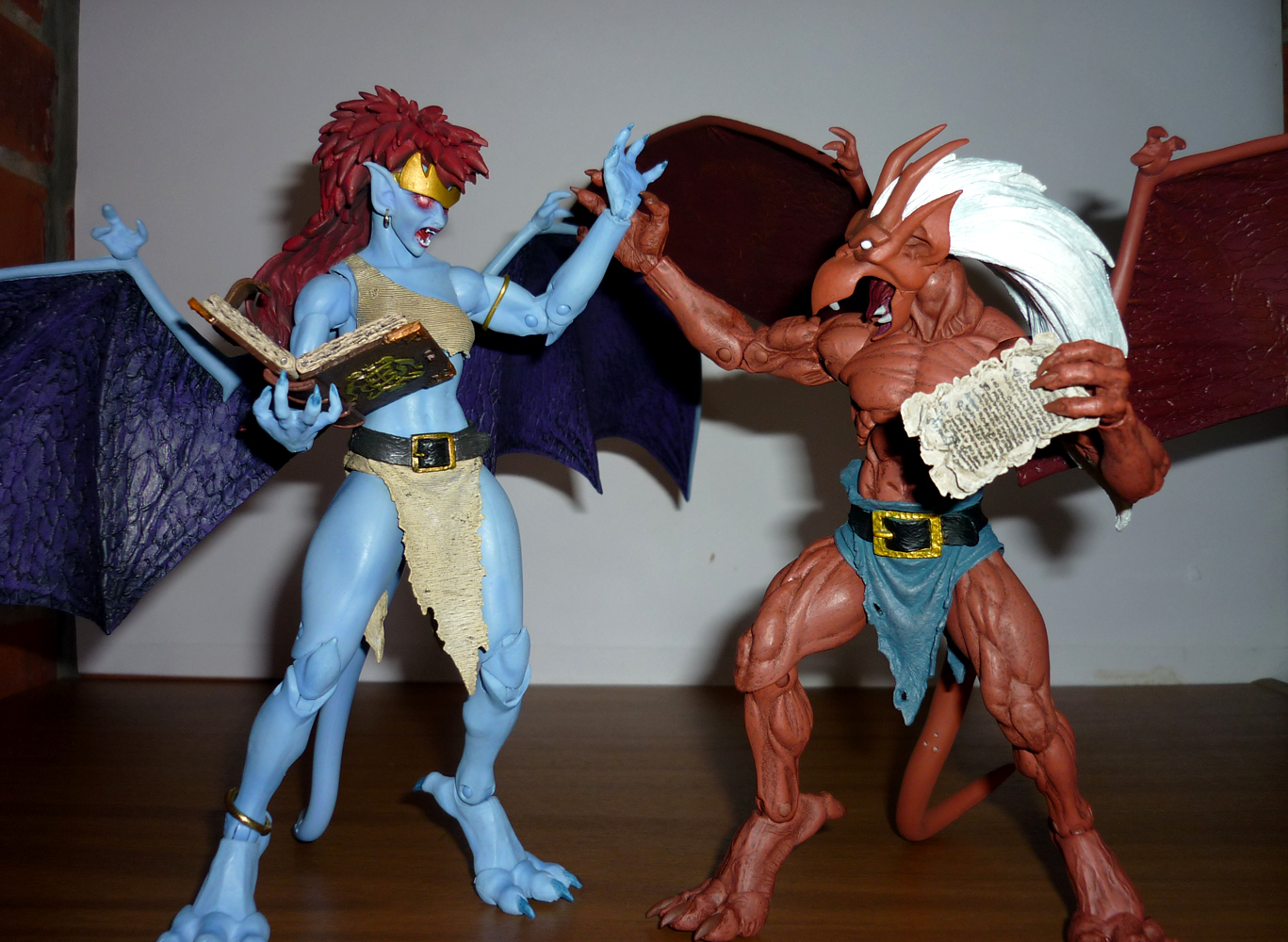 There is also the Grimorum Arcanorum pages he took from Demona, the spell used to steal Goliath´s free will. The pages are made with soft plastic and they looks really really beautifull, very aged with missign pieces and the sides curling, but the printing is surprisinglly clean on them but of course, they are on another language.